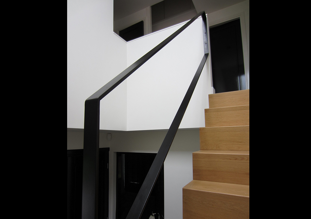 3. Zware massieve leuning waarvan het uiteinde mooi in een klassieke krul zijn uitgesmeed.
